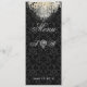 PixDezines wedding menus, crystal chandelier on black desiree damask with a dash of gold on the chandelier.