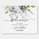 PixDezines monogram greenery wedding welcome sign, featuring an elegant Dusty Purple Gum Eucalyptus and dusty blue foliage. This welcome sign is suitable for any event. Our dynamic design allows you to add and edit all elements.