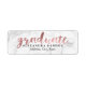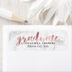 PixDezines graduation return address labels featuring white marble and faux rose gold modern script font.