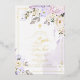 PixDezines real foil Baptism - 3 colors foil available, featuring watercolor pale purple hydrangeas, lilac purple roses and alabaster roses with springs of gum eucalyptus; a faux gold cross, gold dust and frame accented with luxury calligraphy script. All elements editable and removable.
