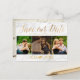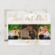 PixDezines white marble slab, fun script, a faux gold heart for your engagement photos for this save our date postcards, with DIY background color and fonts.