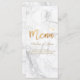 PixDezines white polished marble fancy script menu in faux gold -- modern and contemporary. All elements are editable including background color, fonts and fonts colors.... Easy to customize.
