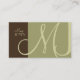PixDezines monogram en retro in chocolate brown and sage green business cards. Or just as a profile card in your wallet to introduce yourself in style. Have fun playing with the fonts and background colors.