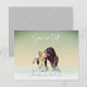 PixDezines photo save our date with modern signature script font on flat announcement card and a blush heart. Customize it!