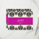 PixDezines Piqué Damask RSVPs (require 5x7 invitations) in black and off white which are customizable... We accented with hot pink... you can select from our convenient chart...