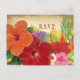 PixDezines postcard rsvp red and orange hibiscus leis and monstera leaves in bright and colorful of tropical floral on vintage grunge faux parchment for that vintage look. This year we added veriegated hibiscus. Very vibrant and cheerful for a luau or beach wedding, graduation, family reunion, birthday party, et al.. You can copy and paste for more flowers, as well as change background color and font.