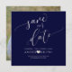PixDezines modern calligraphy script save the date in faux silver (faux foil) with DIY navy blue background color. PixDezines dynamic designs allow you to edit any element on this invitation template. Copyright © 2017 PixDezines.com™ and PixDezines™ on zazzle.com. All rights reserved.