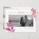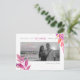 PixDezines pink, orange, summer foliage and elegant calligraphy script font in faux rose gold foil with DIY engagement photos for save our date postcards, accented with ink splatters in faux gold.