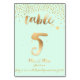PixDezines gold brush strokes table number 5, with faux gold sprinkles and a DIY mint green background.