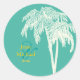 PixDezines twin palms with DIY background color and fonts. Glossy sticker is perfect for any occasion as party favor seal or envelope sealers and return address all in one.
