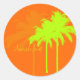 PixDezines neon green twin palms with DIY background color and fonts. Glossy sticker is perfect for any occasion as party favor seal or envelope sealers and return address all in one.