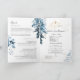 PixDezines Watercolor dusty blue foliage Baptism Program with luxury calligraphy script and a cross in faux gold. All elements are editable, copy and paste.