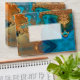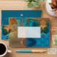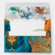 PixDezines Bar Mitzvah / Bat Mitzvah envelope with watercolor modern galaxy abstract in teal and orange. Accented with faux gold Star of David. All elements are adjustable and removable.