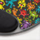 The plastic backing is nice and sturdy. The grippy pads underneath keep the mouse pad where I put it on my table. The pad the mouse sits on is cut well to fit the backing. The wrist pad is perfectly soft, supportive, and thick. I'm left-handed, and this mouse pad works just as well for me as it does for my right-handed friends. I'm the designer of HippieClecticHope products. I'm blown away by how well my intricate fractals turn out on the tangible items in the Zazzle Marketplace. This particular mouse pad ***appears*** like a 3D object... A mathematically-engineered rainbow black opal, inlaid under transparent fabric...