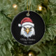 Pixel Art Bald Eagle Santa Hat Ceramic Ornament