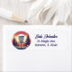 Pixel art orange and blue disc golf course at sunset personalized return address labels.