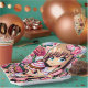 Birthday party paper plates with a cute video gaming pixel art theme. Cute little girl with a cupcake surrounded by flowers and pixels to give a gaming vibe.