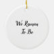 We were Ramen To Be, Funny Christmas Pun Ceramic Ornament. An ai depiction of a bowl of Pixel Art Ramen Noodles with green onions, boiled eggs and cilantro.