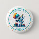 Pixel Art Robot in Orange and Teal Birthday Boy Button