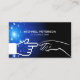 This unique business card design features a pixelated digital hand reaching out to connect with a human hand, symbolizing the bridge between technology and human interaction. Perfect for IT professionals, tech consultants, and digital service providers, this modern design captures the essence of innovation and connectivity. Make a memorable impression with this sleek, professional card that reflects expertise in the digital world. Ideal for those in the tech industry who want to showcase their forward-thinking approach.