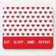 This retro-style mouse mat makes a great gift for video game lovers. The design features an 8-bit pixel style red heart pattern with the wording "eat. sleep. game. repeat." Wording can be changed to something of your choice if you prefer.
