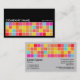 A stylish attractive colorful modern business/profile card with an attractive and colorful pixel or squares motif. Company details on the front with name and contact details on the back with a variation of the front theme. The design is however customizable in many ways, suitable for may types of business.