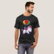 My 11 yo wore adult XL (5’7” 165#). The 8yo is small framed. She wore adult small and tied it in the back. Grandma wore adult large with long sleeve shirt underneath. Tall girl adult medium. Dark haired male adult large. Good quality dark Heather gray, Gildan brand shirt. -it was next up from basic choice and cost about $20 per shirt. Not too thick or thin. Washed and dried well, no major shrinkage. Not see-through. Can wear a bra under it fine. Screen print is just as shown and well done, front and back.