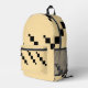 A trendy backpack featuring a striking pixelated geometric pattern in orange, black, and deep blue, blending style with practicality. Ideal for school, travel, or everyday use.
