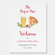 The sign I ordered for my daughter's engagement party was perfect! It arrived exactly as described and ready to place on the easel. It was delivered on time. The printing was clear and the colors were very pretty, just like it was advertised online.