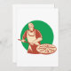 A pizza baker with a large pizza ready for cooking. This design looks really effective on these Invitations