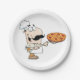 A pizza cook holding a large pizza. This design looks really effective on these Paper Plates