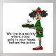 Pizza Delivery Humor T-shirts, sweatshirts, mugs, magnets, buttons, mousepads, cards, stickers, tote bags, keychains, and other funny apparel and gifts featuring Stella as a pizza delivery girl proclaiming we live in a society where pizza gets to your house before the police!