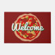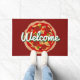 Pizza door mat (large) with custom welcome text. Add your own message, family name, monogram, surname or funny quote. Cute gift idea for new home / housewarming. pizzeria, italian restaurant, diner, shop, store, wedding or dinner party. Custom color background. Stylish script typography with pepperoni pizza illustration. Personalizable doormat sign template. Create your own entry mat / rug for front door / entryway or hall / venue. Customizable home decor / decorations for your house or business. Add your own monogram letter initials or surname. Fast food novelty design.