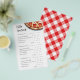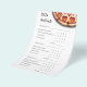 Spice up your pizza party with this funny pizza-making scorecard! Featuring a charming illustrated pizza on the front and a classic red gingham print on the back, this score card lets guests rate each pizza from 1 to 5. Whether you're hosting an engagement party, bachelorette party, rehearsal dinner, or a kid's birthday, this is a must-have Italian-inspired party supply! Perfect for anyone who loves pizza and games, this pizza party scorecard adds a competitive and hilarious twist to your event.