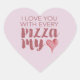 Show your appreciation to your pizza lover friends, galantines and family with this witty heart shaped sticker. The design features a clever pun I Love You With Every Pizza My Heart in a hand lettered script typography with a simple watercolor heart in shades of terra rosa over a pale pink background. To see the matching stationery suite and gifts visit www.zazzle.com/dotellabelle.