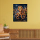 Dramatic pizza octopus artwork featuring a grand sea creature formed from bubbling crust textures, melted mozzarella, tomato sauce gradients, basil accents, olive details, and artisan charred edges. Rising from dark harbor waters beside fishing boats, stone docks, glowing ovens, herb crates, hanging lamps, and moonlit reflections, this theatrical fantasy design feels rich and luxurious. Perfect for pizzerias, kitchens, restaurants, game rooms, or collectors of bold edible animal art.