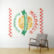 Grab a slice! Welcome everyone to your pizza birthday party with pizza slice backdrop sign template. This pizza birthday party sign features a slice of pizza with cream box background on a modern style backdrop design.