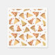 Retro style pizza slices with all the topping options and small red hearts on a white background paper napkins.