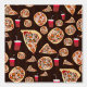 Pizza with sausage and pepperoni and soda with straw in a repeating pattern.