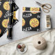 Pizza patterned wrapping paper in black, white, red, and yellow.