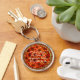 Pizzeria pizza keychain is a perfect place to keep the keys to your pizzeria's delivery vehicle. Looks like a little pizza pie complete with crust, cheese, tomato sauce and crispy crust! Easily customize by adding your restaurant's name and address, or remove text to leave the pie only.