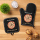 An Oven Mitt & Pot Holder Set for pizza restaurant business or food truck, home delivery food, cooking chef with a full Margherita pizza illustration. Texts are fully customizable! You can also use it as a gift for a wedding, a birthday or a house-warming party!