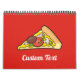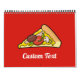 Pizza slice cartoon illustration. Custom background color. Custom text.