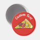 Pizza slice cartoon illustration. Custom background color. Custom text.