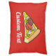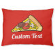 Pizza slice cartoon illustration. Custom background color. Custom text.