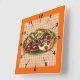 Plate with delicious slices of pizza on orange vichy towel. Very cute wall clock for your kitchen or Pizzeria! You can change clock background color as well you prefer.