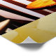 This is a fantasy pizzeria poster with a mozzarella background. The art was partially created with Artificial Intelligence. The poster has a neon Pizza Wall title at the top. The chairs seem to be made of pizza. There are pizza slices on a striped wall. There is a pizza as big as the table top on a table. This poster would be great for pizza lovers and people who work at pizza parlors. The poster size is 20" by 24" and you can select other sizes. The poster is a gallery quality giclee print.