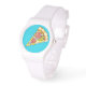 I only have one complaint. I ordered the watch with clear case and strap, and what was sent was white case and strap. I'm going to keep it because 1) it looks very nice in white, and 2) it would take too long to get a replacement made and sent in time for my occasion. Aside from the mix up with the color, the watch does look very good in white. The purple dial is actually sparkly which did not show in the online images. That was a nice surprise. If you like Swatch watches this is very similar to those. It's 33.6mm in diameter, 10.5mm thick, and 40.6mm lug to lug. Stainless steel case back says 3ATM/30m WR, so no swimming or showering or submerging this one. If you like Woodstock, this is a great choice.