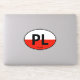 PL country code Polish flag oval vinyl sticker for car, caravan or camper. Country abbreviation. Create your own personalized stickers for vehicle, luggage, bike, water bottles, laptop and other products. Unique contour-cut stickers. Available in small, medium and large sizes. Add your own text or monogram. Great for international and national travel, road trips, vacations, sports events and more. Classic European style white oval shape sticker sign. Poland flag logo.