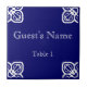 Place name card on Spanish tile. Doubles as a trivet favor, or they can be collected to make a memory wall after the event. The background color can be customized to match your wedding theme. You could even add a photo if you wanted.